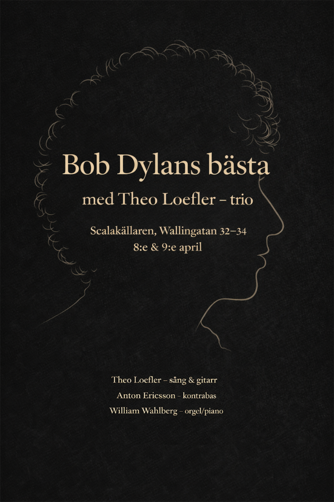 Då Bob Dylan knappt längre spelar sina gamla låtar får vi nöja oss med det näst bästa alternativet: under två kvällar i april månad har ni möjlighet att höra det allra bästa av Bob Dylans musik – live i Scalateaterns källare!