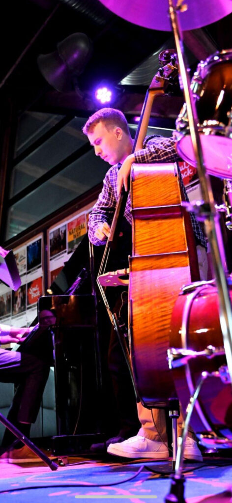 Uppsalabasisten Per Grundström har landat permanent i Stockholm och bjuder in till en härlig kväll i foajén med en glödhet kvintett som spelar en svängig repertoar.