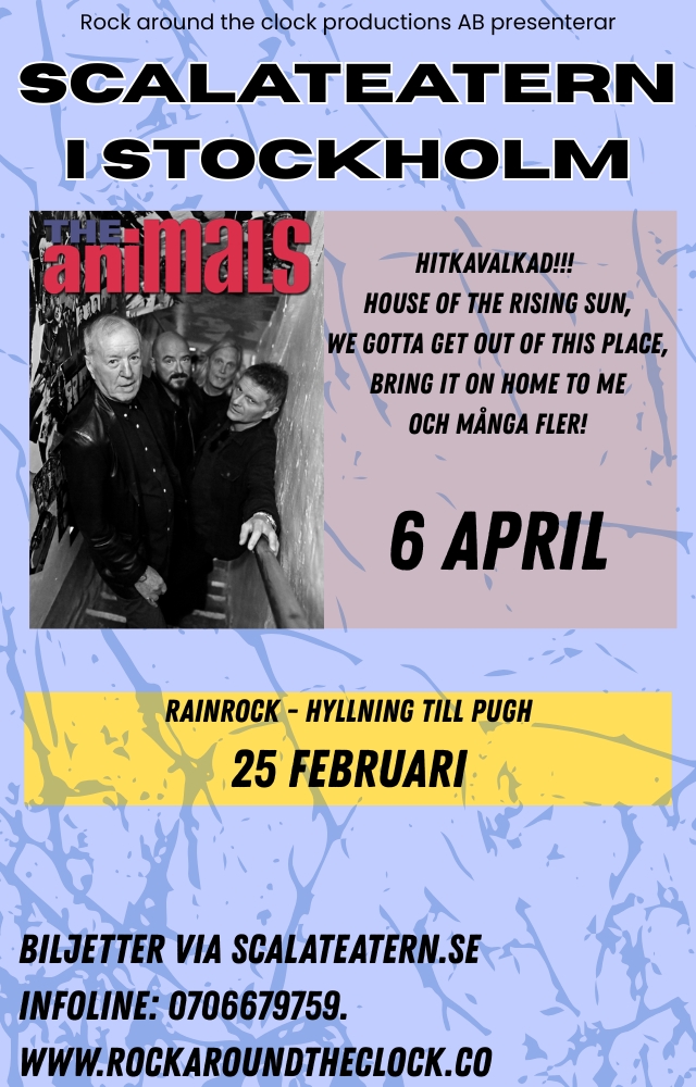 The Animals från England feat. Originaltrummisen JOHN STEEL kommer att förgylla din afton med ett pärlband av hits!