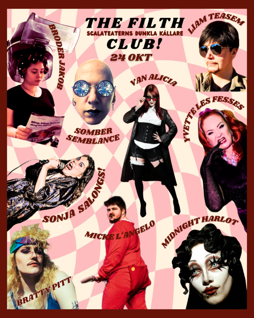 Drag, burlesque, cabaret, performance, freaks & geeks. Smuts, humor, politik, kärlek och trams – tillsammans blir det lättare att dansa macarena.