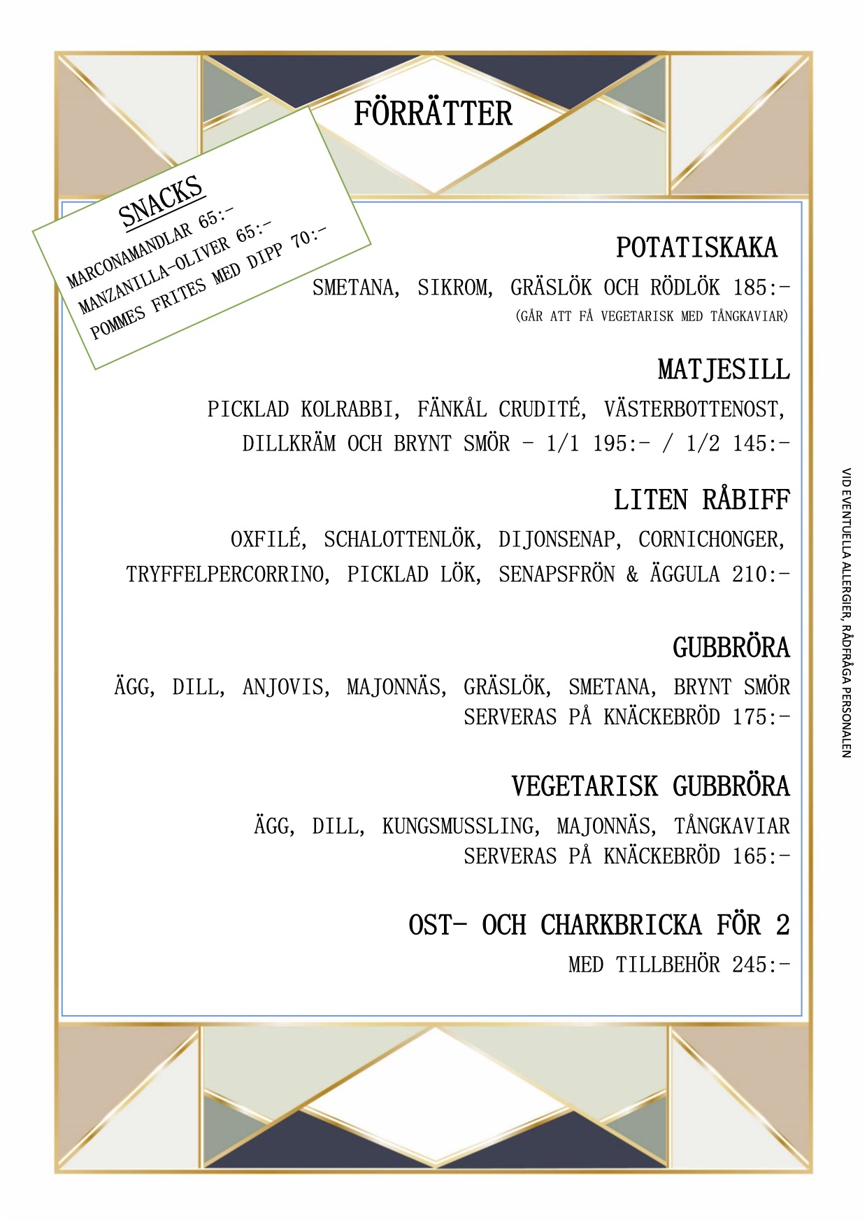 Vid matinéföreställning öppnar restaurangen i regel en timme innan föreställning.